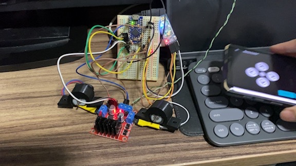 Testing Bluetooth motor control with the L298N, before installing the paddles.